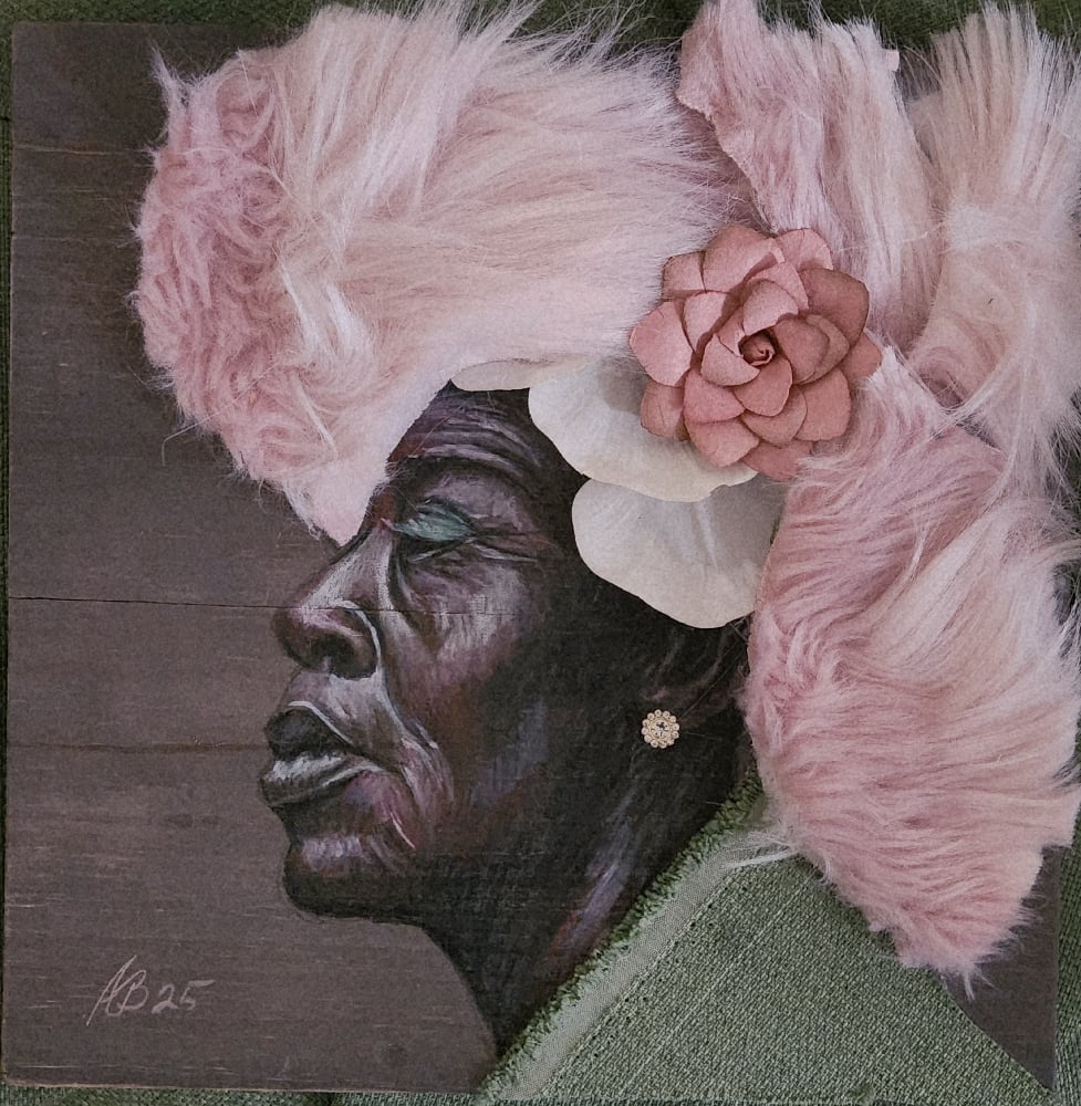 10x10 ColorPencil collage sketch Original on wood
