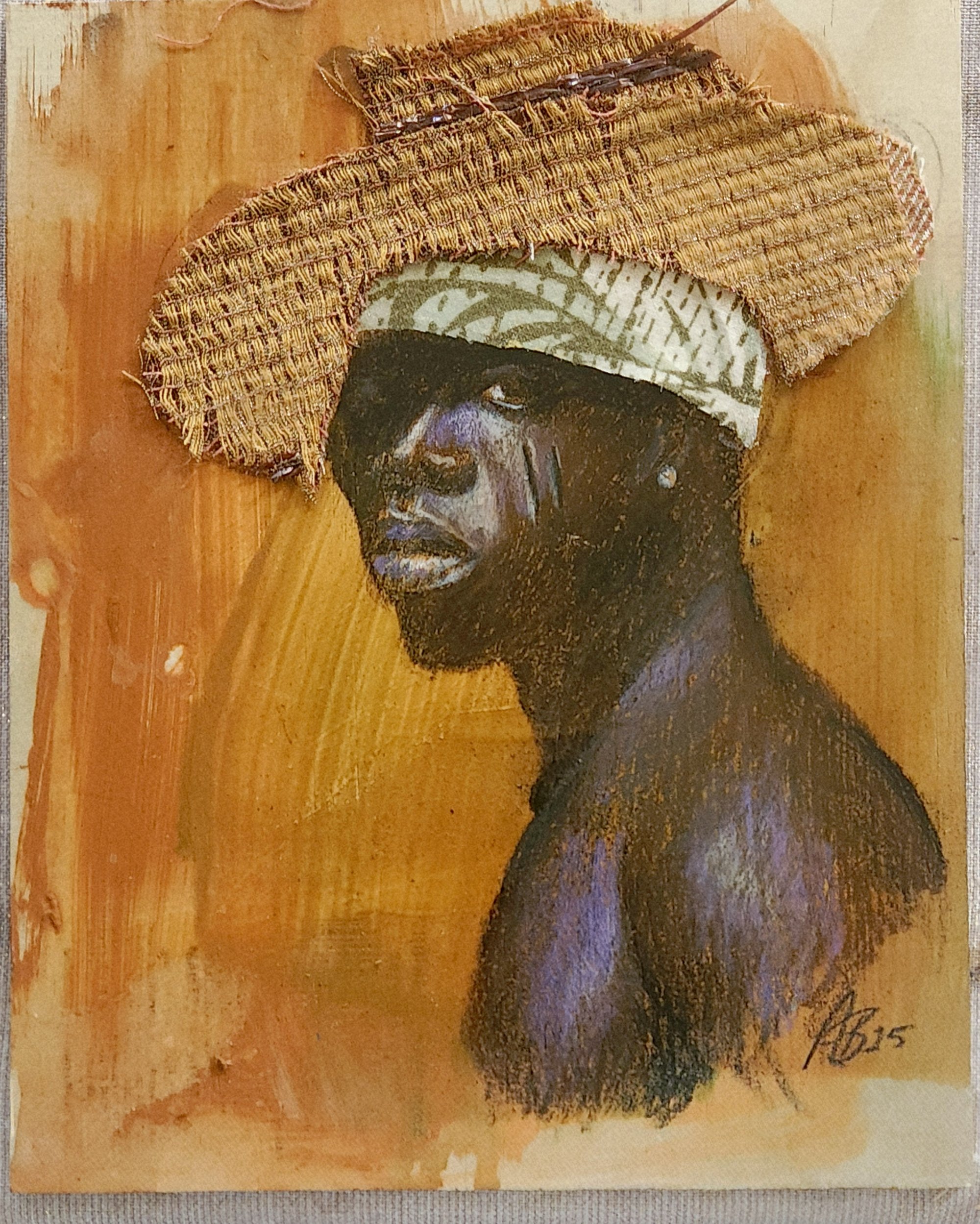 10x8 ColorPencil and fabrics on wood Original